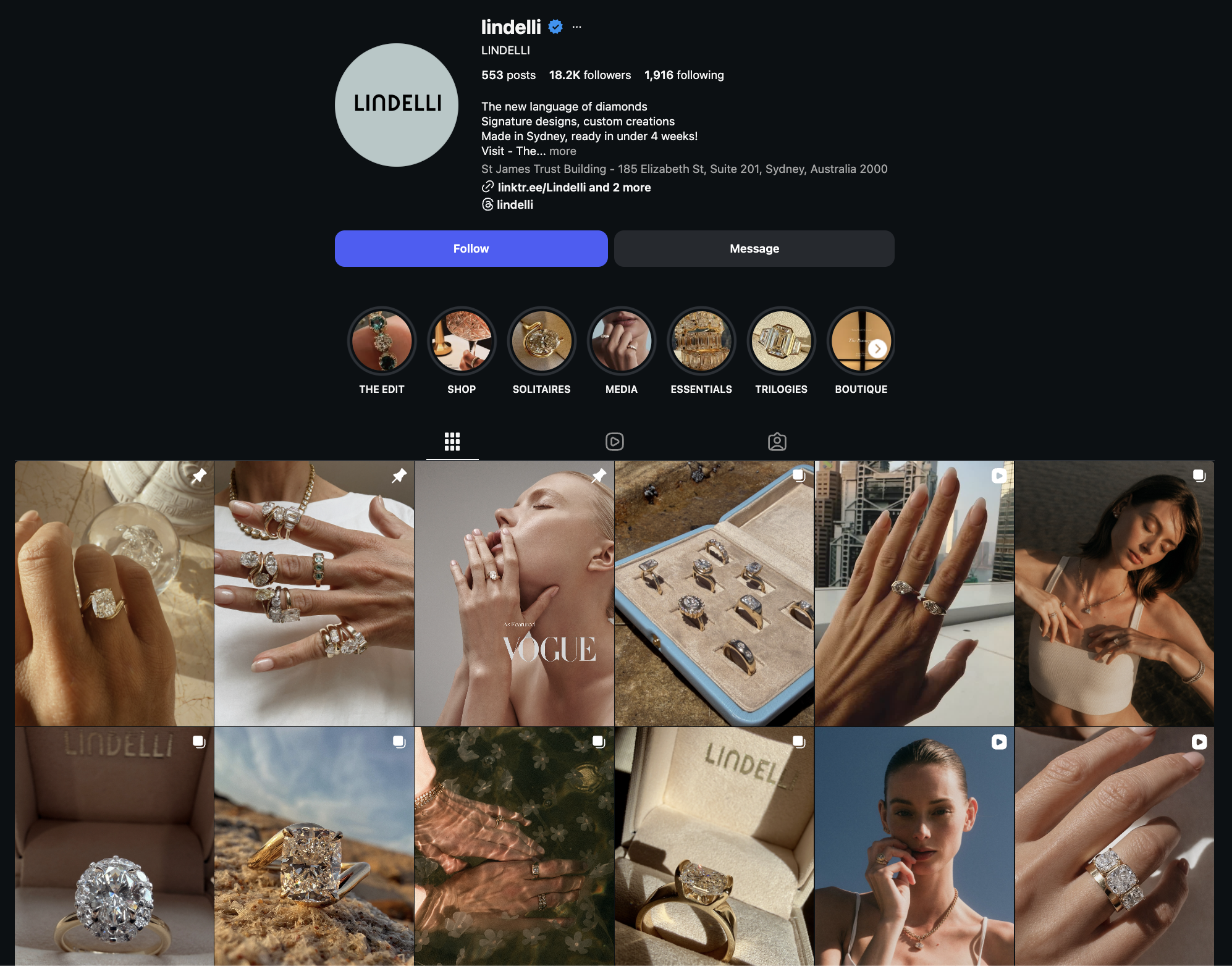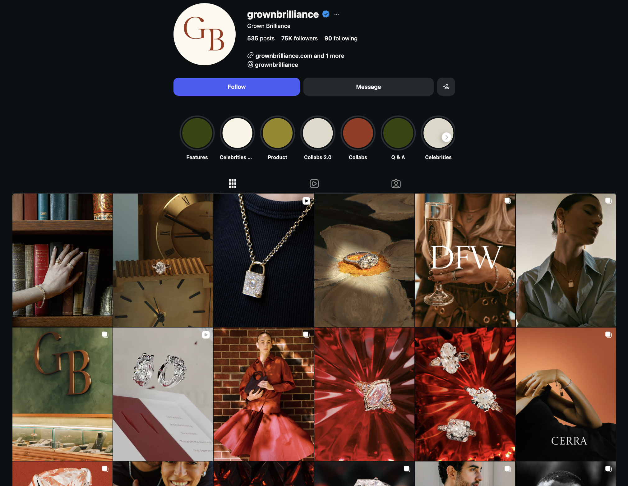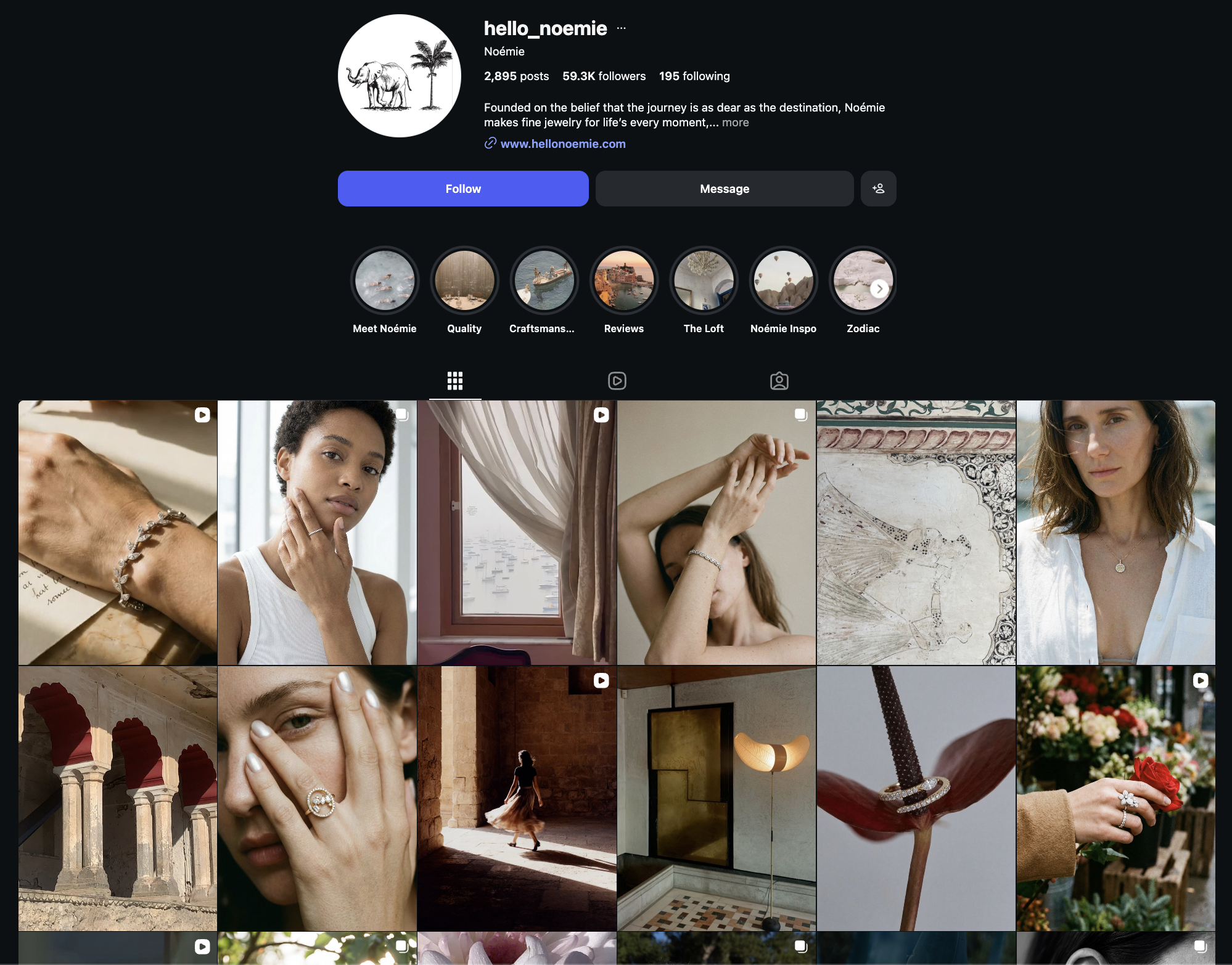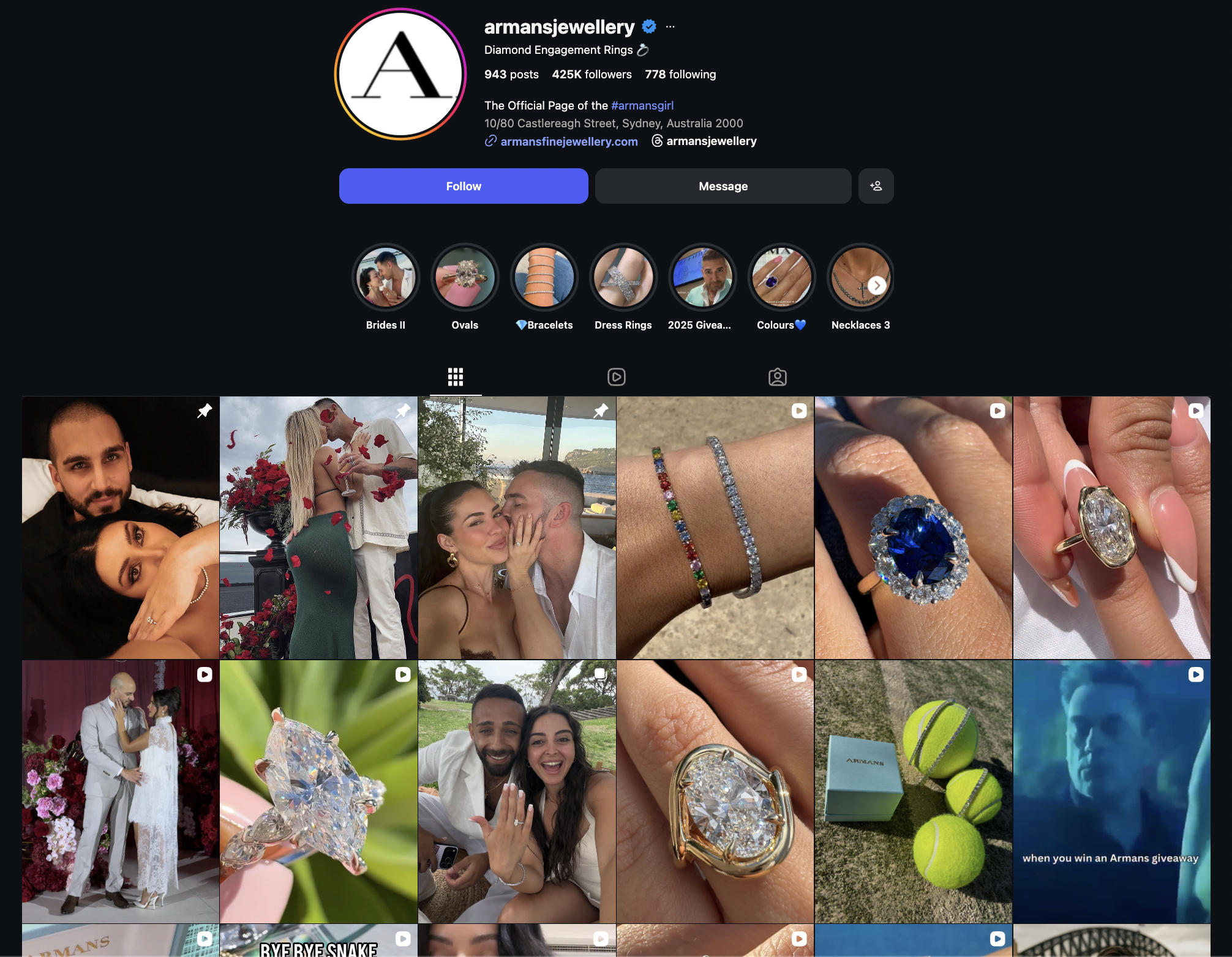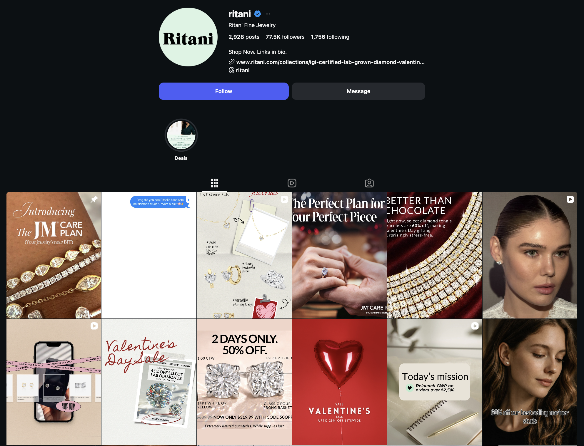 And when you look at their timeline, most posts have clean, aesthetic reel covers. Their reels are often part of a series, featuring different diamond sizes, unique shapes, or educational facts about them. And I think their reels are also synced with their TikTok account, using the same content across both platforms.