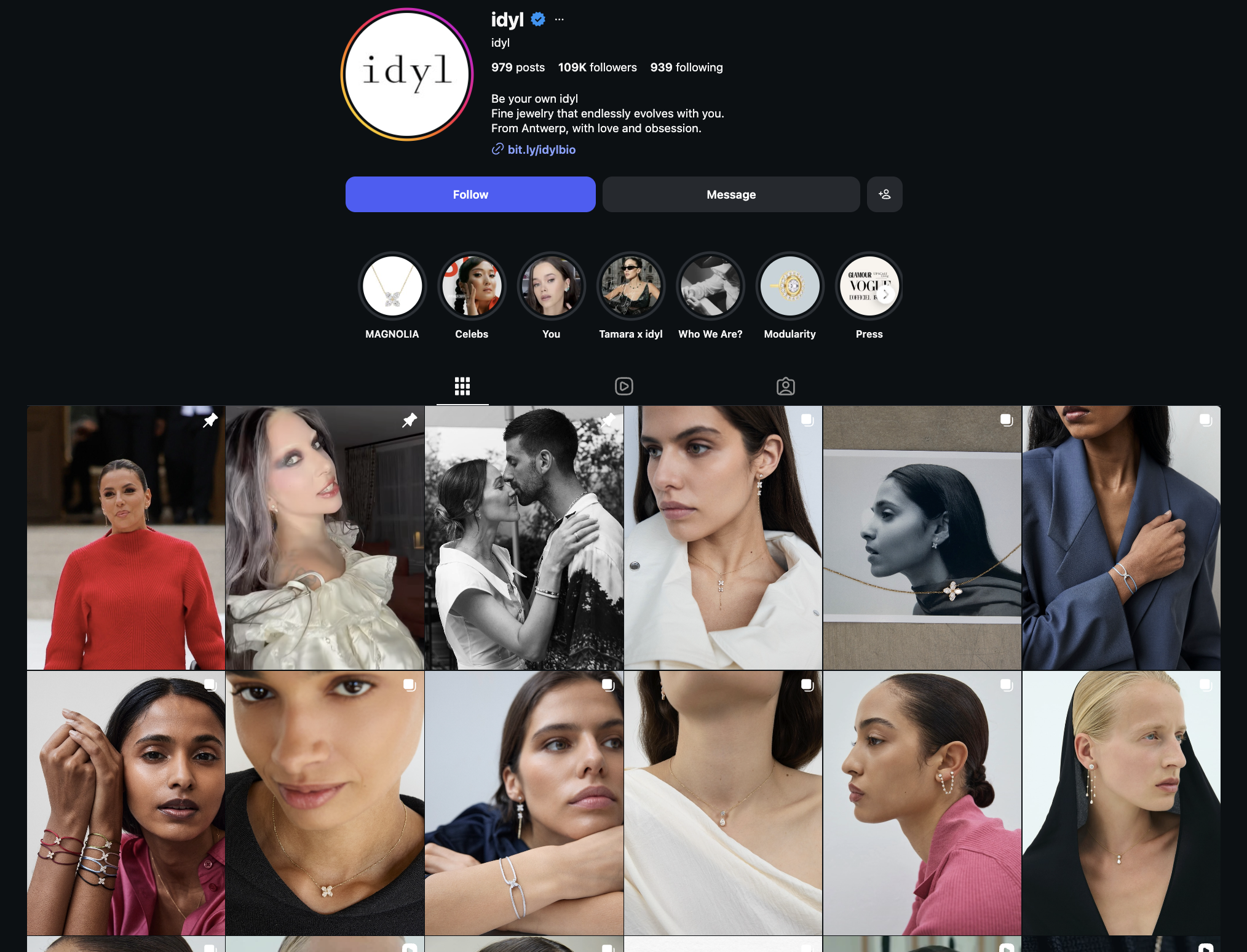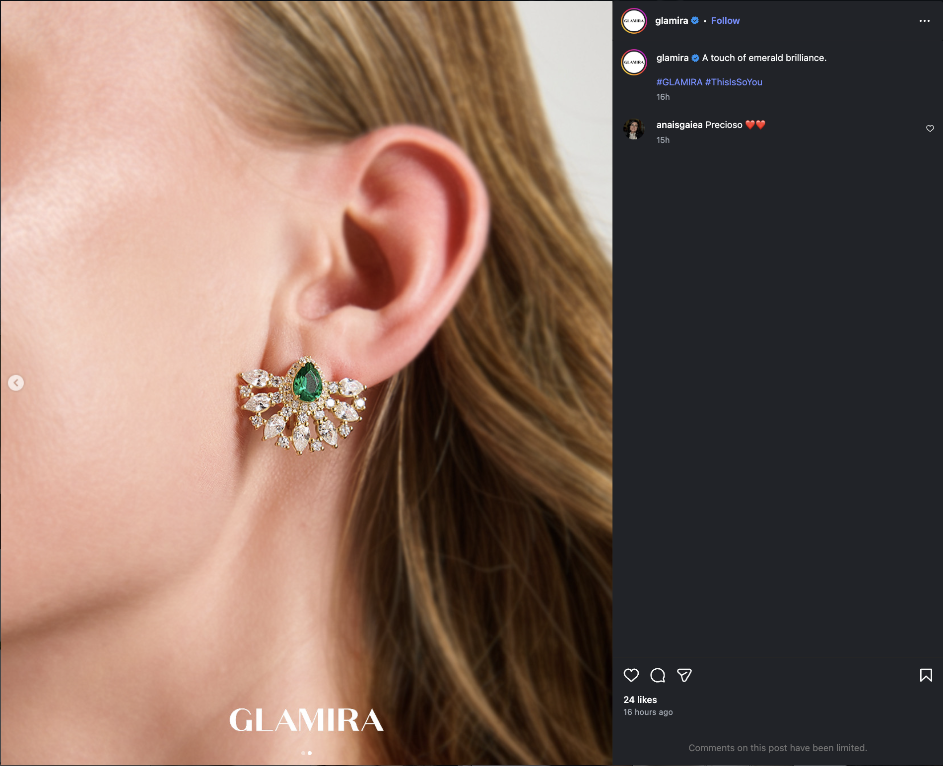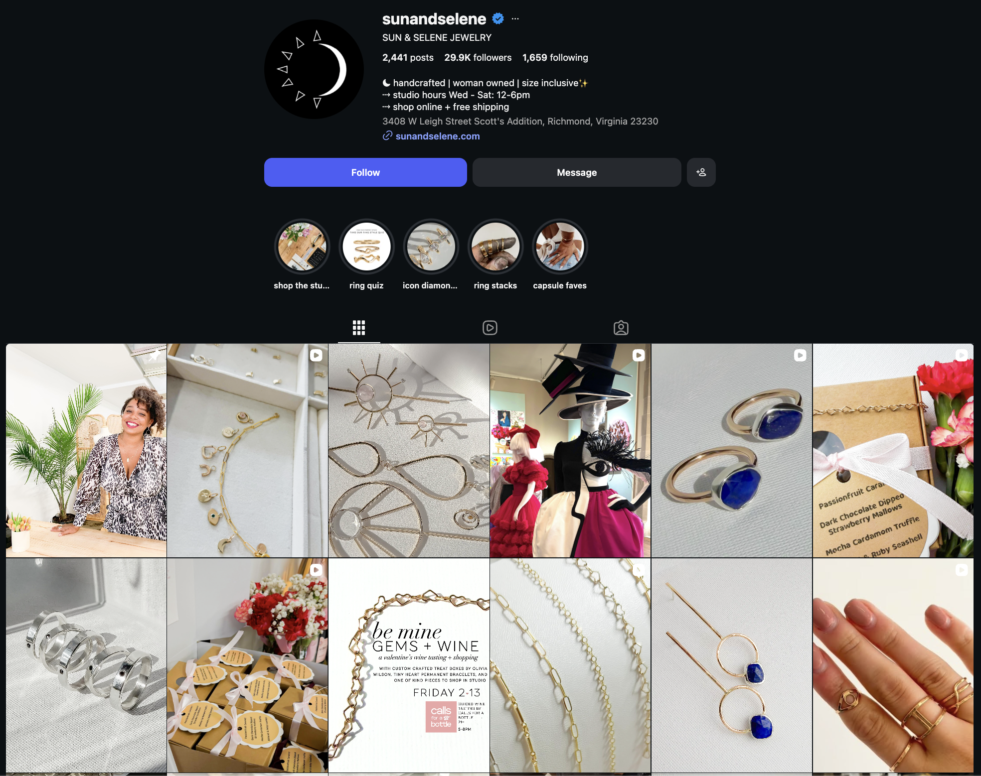 They usually present the product with a close-up shot of the jewelry, paired with a simple caption and minimal hashtags.