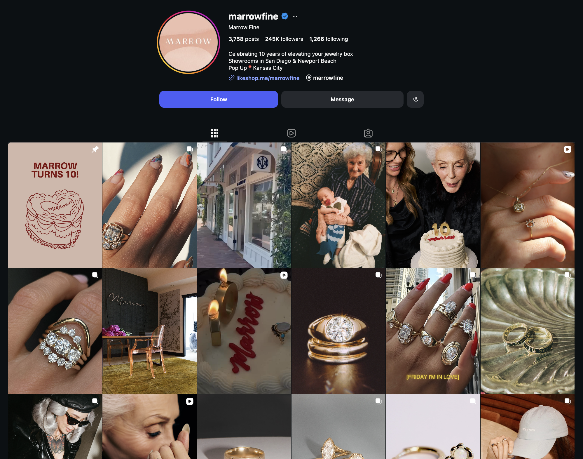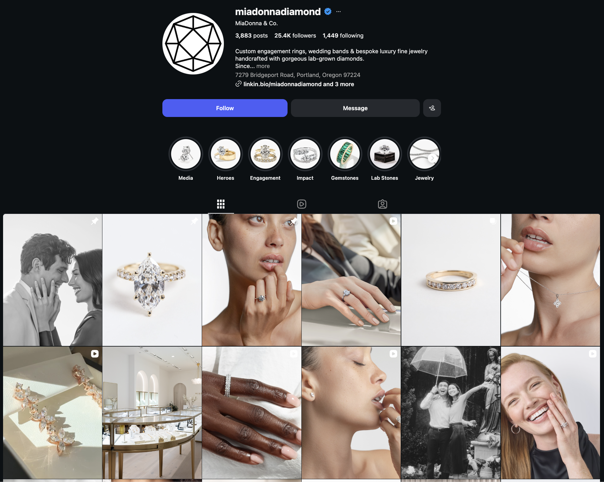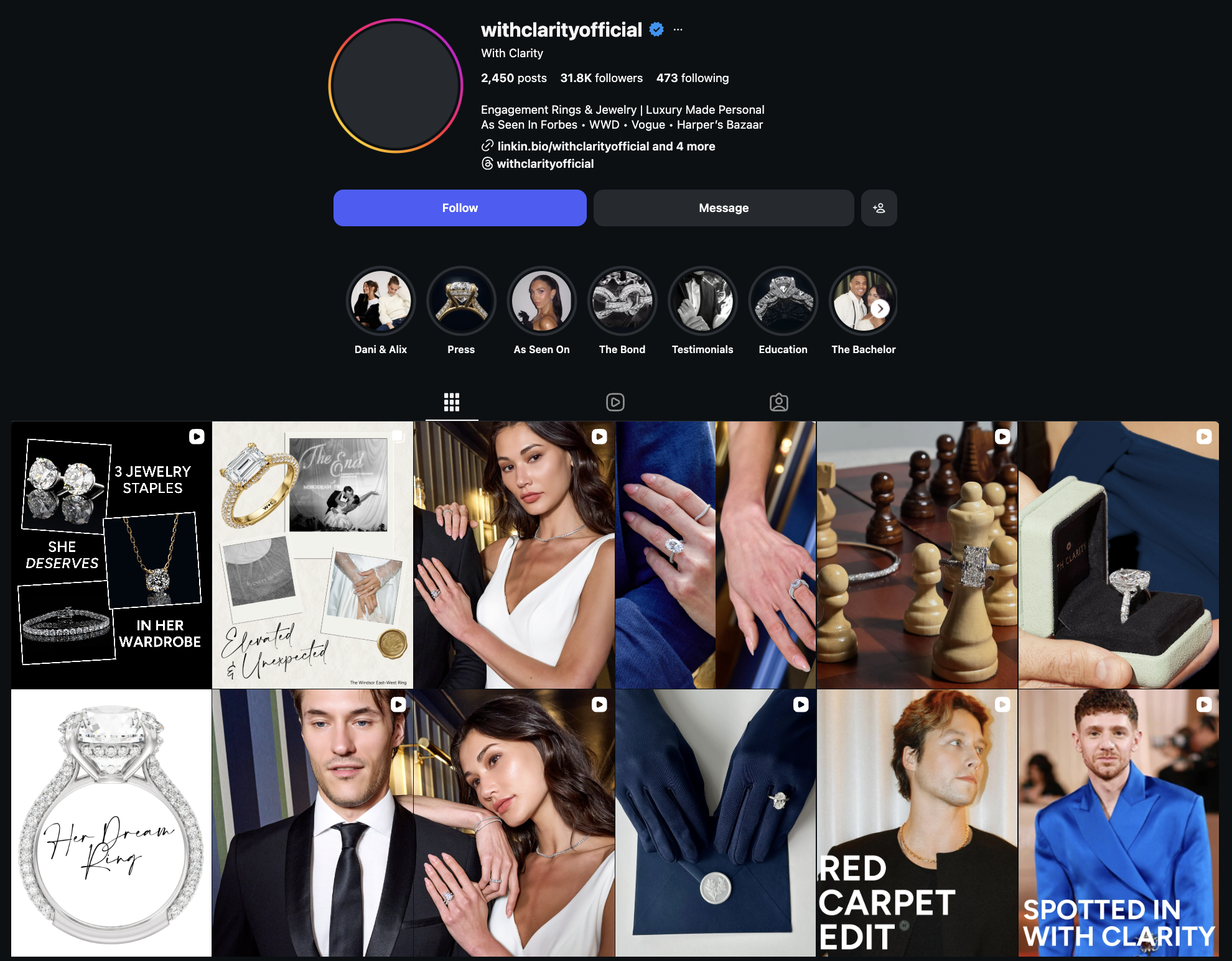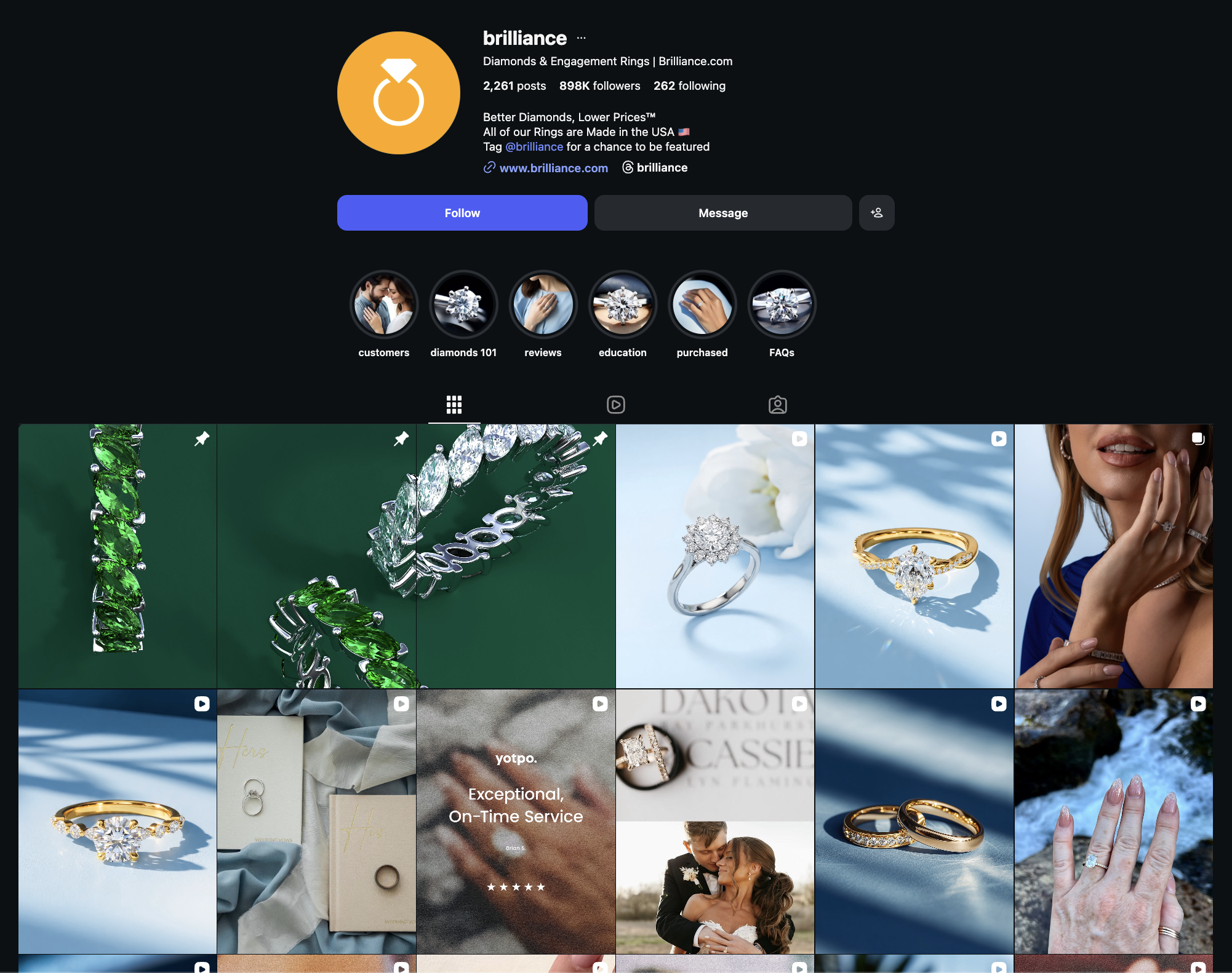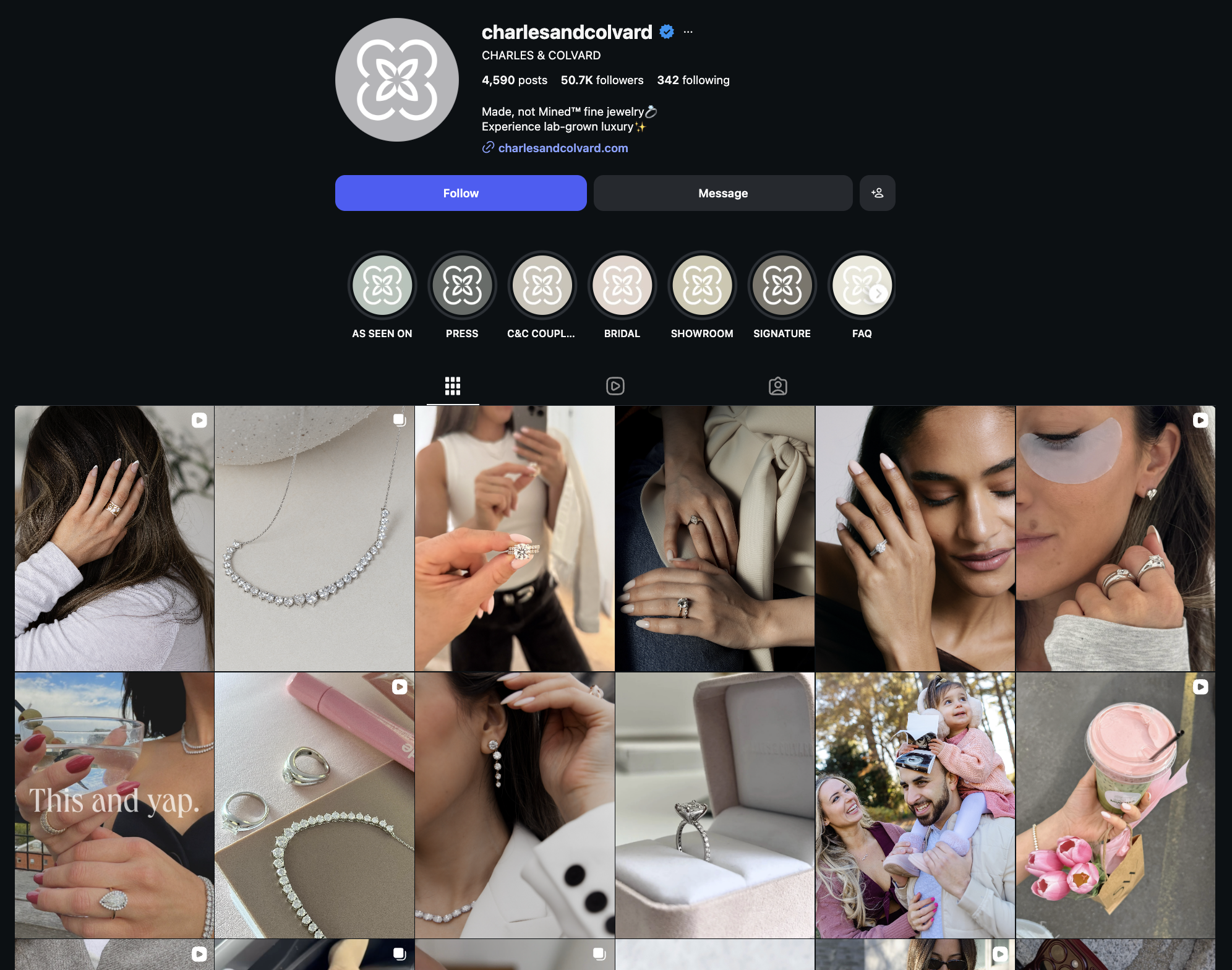 They incorporate content that tells real couple stories, highlighting the service and quality of the jewelry. This gives the audience something relatable and helps them imagine what that ideal experience could look like in their own lives.