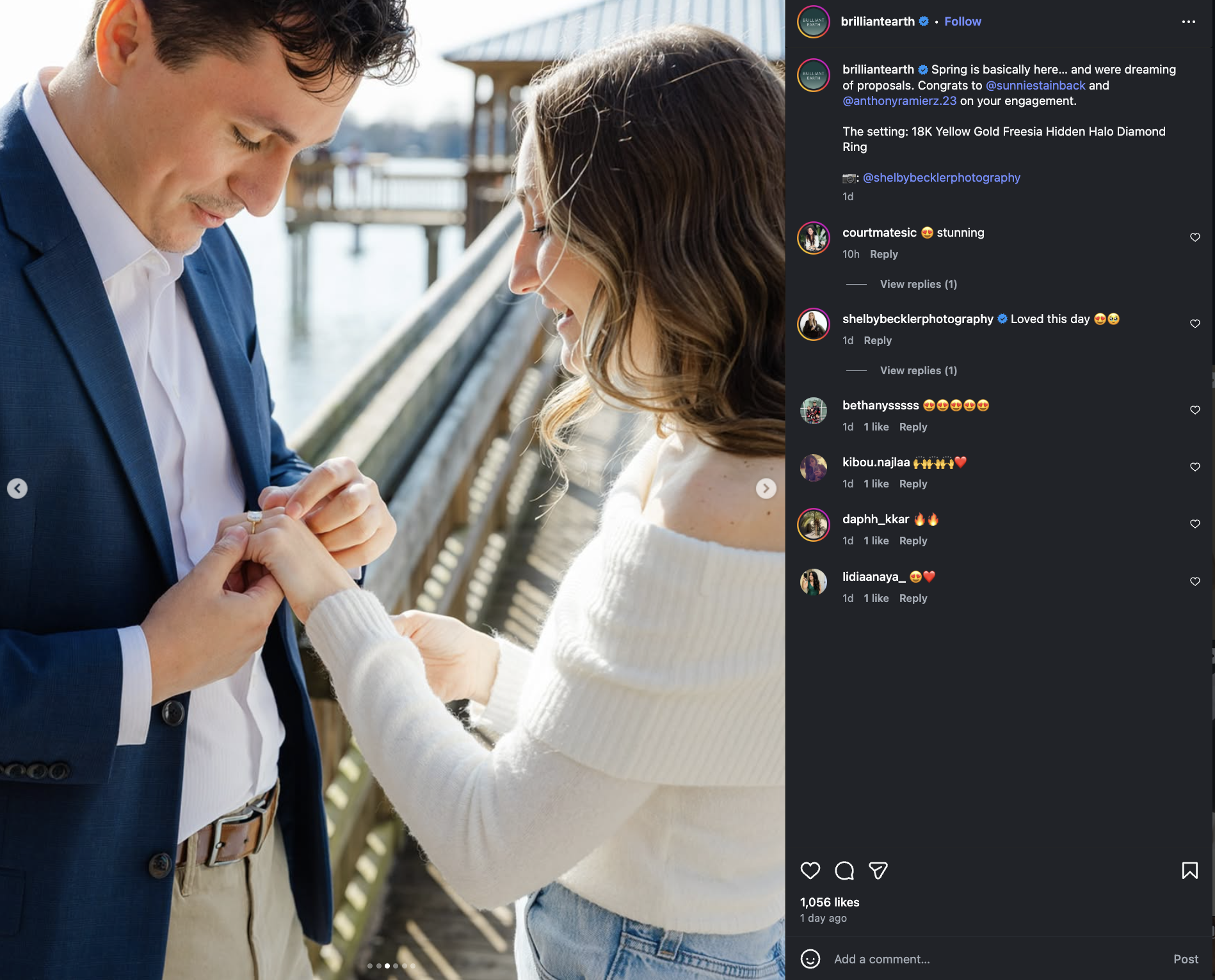 They use real photos from their clients, often couples, targeting people who are planning to get married. So they post couple photos along with close-up shots of the woman’s hand holding her partner’s.